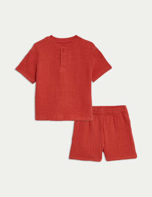 M&S Boys Pure Cotton Checked Pyjamas (1-8 Yrs) – 1-1+Y – Red Mix, Red Mix