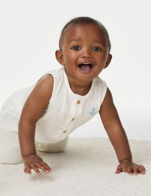 M&S Boys Pure Cotton Helicopter Romper (0-3 Yrs) - 3-6 M - Ivory Mix, Ivory Mix