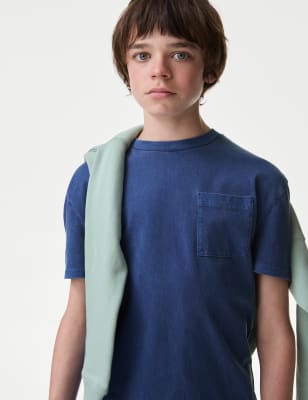 M&S Boys Pure Cotton Miami Graphic T-Shirt (6-16 Yrs) – 7-8 Y – Indigo, Indigo