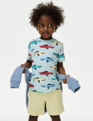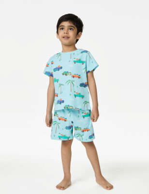 M&S Boys Pure Cotton Palm Tree Shorts (2-8 Yrs) - 3-4 Y - Light Turquoise, Light Turquoise