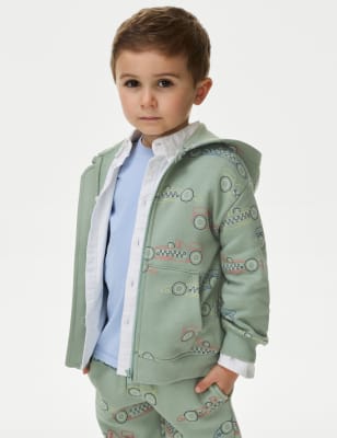 M&S Boys Pure Cotton Stripe Hoodie (2-8 Yrs) – 3-4 Y – Green Mix, Green Mix
