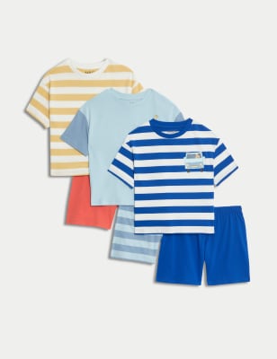 M&S Boys Pure Cotton Striped Slogan T-Shirt (2-8 Yrs) – 2-3 Y – Yellow Mix, Yellow Mix