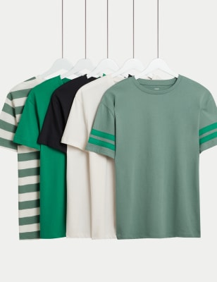 M&S Boys Pure Cotton Striped T-Shirt (2-8 Yrs) – 3-4 Y – Green Mix, Green Mix,Purple Mix