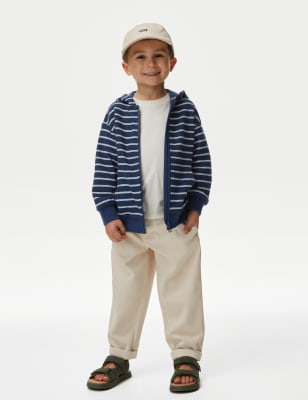 M&S Boys Pure Cotton Textured Hoodie (2-8 Yrs) – 2-3 Y – Green, Green,Orange