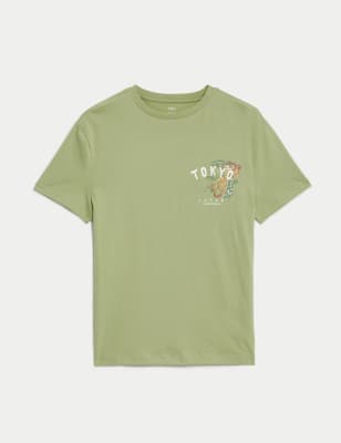 M&S Boys Pure Cotton Tiger Graphic T-Shirt (2-8 Yrs) - 2-3 Y - Green, Green