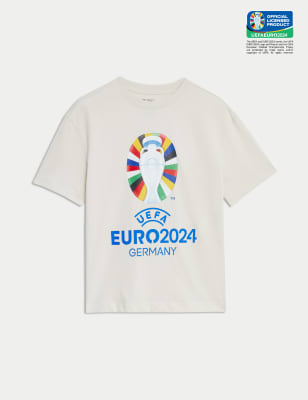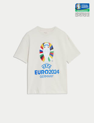 M&S Boys UEFA EURO2024™ Pure Cotton England T-Shirt (6-16 Yrs) - 7-8 Y - White, White