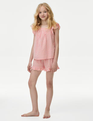 Kids will love snuggling up in these pretty pure cotton pyjamas, which come in a handy pack of two for ease. Regular fit. An elasticated waist on the full-length floral bottoms ensures all night comfort. A practical chest pocket on the long-sleeved top completes the look.