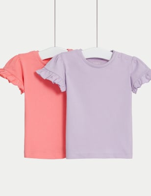 M&S Girls 3pk Pure Cotton Frill Sleeve T-Shirts (0-3 Yrs) – 0-3 M – Pink Mix, Pink Mix