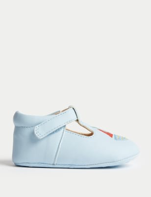 These adorable pre-walker shoes are designed with a charming floral print. Riptape fastenings make them easy to put on and take off.