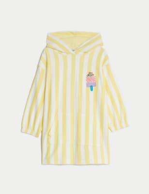 This cotton-rich poncho is an ideal beach cover-up. It's crafted in a regular fit from soft towelling fabric, with a cosy hooded neck. The all-over ditsy floral print and frilly trims add a pretty finish.