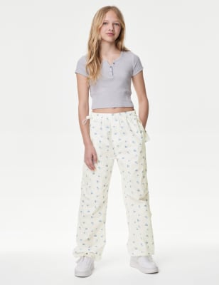 M&S Girls Cotton Rich Floral Applique T-Shirt (2-8 Yrs) – 3-4 Y – Ivory Mix, Ivory Mix,Pink Mix,Blue Mix