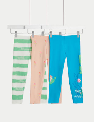M&S Girls Cotton Rich Leggings (2-8 Yrs) – 3-4 Y – Blue Mix, Blue Mix,Melon