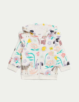 M&S Girls Pure Cotton Animal Print Romper (0-3 Yrs) - 3-6 M - Ivory Mix, Ivory Mix