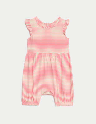 M&S Girls Pure Cotton Cherry Print Romper (0-3 Yrs) – 3-6 M – Coral, Coral