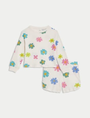 These cotton short pyjamas make a pretty addition to their nightwear collection. Made in a regular fit from comfy ribbed fabric. Decorated with a floral print and button detailing.