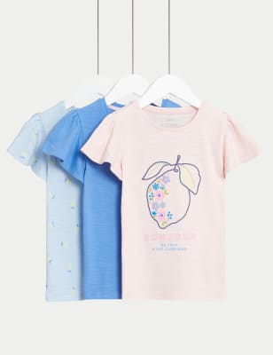 M&S Girls Pure Cotton Graphic T-Shirt (6-16 Yrs) – 6-7 Y – Multi, Multi,Ivory,Pink