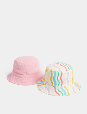 M&S Girls Pure Cotton Reversible Sun Hat (0-1 Yrs) - 3-6M - Pink Mix, Pink Mix