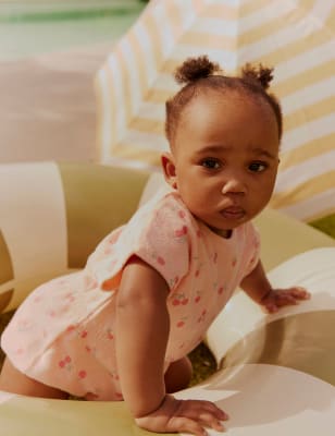 Add some sunshine sparkle to their wardrobe with this pure cotton t-shirt. Comfy regular fit. Features the slogan 'Hotel Tropicana - squeeze the day' on the chest, with glittery embellishments. The motif is repeated in a larger print on the back, with fruit and palm tree graphics.