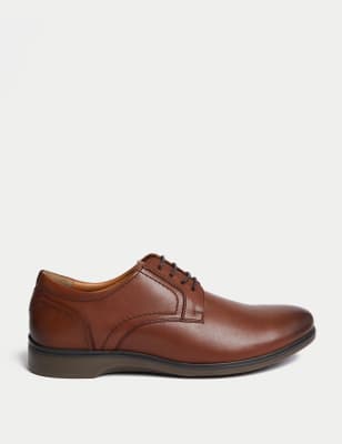 Combine smart style with ultimate comfort in these lace-up leather Derby shoes. Smartstep technology has been used to insert the cushioning into the sole for a thinner and more contemporary look. Soles are made from our hardwearing and long-lasting Durasole 90 material, with our Airflex™ system for enhanced support and flexibility. Freshfeet™ technology combats bacteria to minimise odours. Made with responsibly sourced leather. M&S Collection: versatile styles in modern shapes with unique and playful details.