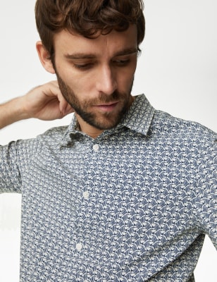 Upgrade your smart-casual wardrobe with this soft and breathable pure cotton short-sleeved shirt. Comfy regular fit. Eye-catching all-over geometric print. Easy-iron fabric means it just needs a quick press to be ready to wear.n M&S Collection: easy-to-wear wardrobe staples that combine classic and contemporary styles.