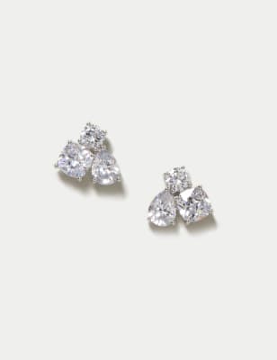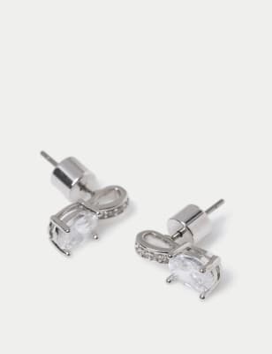 M&S Women's 2 Pack Platinum Plated Engagement Rings - S-M - Silver, Silver