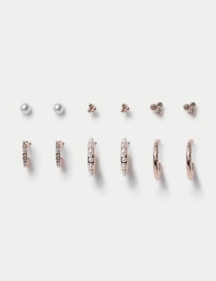 M&S Women's 3 Pack Mixed Metal Chunky Pave Hoop Earring Set - Multi, Multi