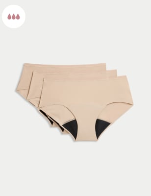 Prep for your period with these trusty leak-free knickers, made from a soft cotton and modal blend. Three high leg styles with a high level of absorbency. Three-layer gusset draws moisture away from the body to keep you dry and feeling fresh. StayNew™ technology ensures longer-lasting colour and finish. Made with responsibly sourced Tencel™ modal. We only ever use responsibly sourced cotton for our clothes.n M&S Collection: versatile styles in modern shapes with unique and playful details.