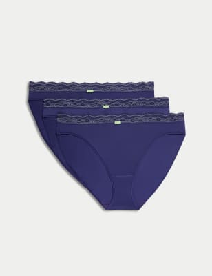 Stay comfy all day with this trio of lace thongs, designed with added stretch for a perfect fit. They sit low on the waist and feature pretty lace trims. A little bow adds to the feminine look.n M&S Collection: versatile styles in modern shapes with unique and playful details.