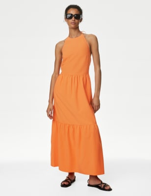 This printed midi dress is crafted from lightweight chiffon for an airy feel. It's cut in a regular fit, with a waisted silhouette and a feminine v-neckline. Ruffles bring elegant movement to the short sleeves and the floaty tiered hem. The design is complete with a lining for comfort and coverage. n M&S Collection: easy-to-wear wardrobe staples that combine classic and contemporary styles.