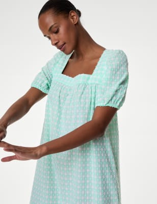 Unwind in this soft and breathable cotton-modal nightdress. Made in an easy regular fit, with short sleeves and a round neckline. An all-over starfish gives a whimsical air to this long design.n M&S Collection: versatile styles in modern shapes with unique and playful details.