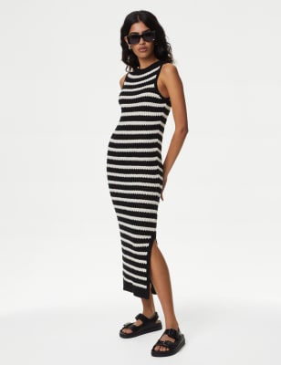 This cotton-rich knitted dress combines an elegant column shape with an effortless feel. The sleeveless design is made to a regular fit, with a flattering midi-length hem and a v-neckline at the front and back. n M&S Collection: easy-to-wear wardrobe staples that combine classic and contemporary styles.