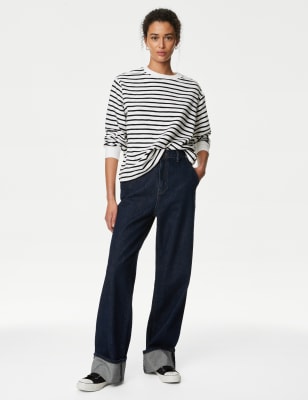 Made from cotton-rich fabric that's brushed on the inside for extra cosiness, this sweatshirt is a smooth and soft weekend essential. Cut in a comfy regular fit, with ribbing at its crew neck and cuffs for a touch of texture. All-over striped pattern for a timeless look. n M&S Collection: easy-to-wear wardrobe staples that combine classic and contemporary styles.