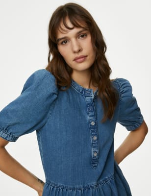 This denim midi skirt is crafted in a circle shape for a full, swishy effect. A bow belt at the waist gives a feminine touch, as does the slit at the front. This piece is complete with pockets for added practicality.n M&S Collection: easy-to-wear wardrobe staples that combine classic and contemporary styles.