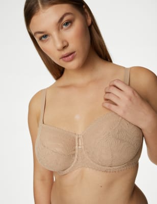 This pretty lace bra is made from our lightweight Flexifit™ fabric, which moves with you for all-day comfort. The full cups are gently padded for a flattering shape, while underwires give extra support and lift. A lace trim at the cleavage and underband complements the delicate foliage pattern on the cups.n M&S Collection: versatile styles in modern shapes with unique and playful details.