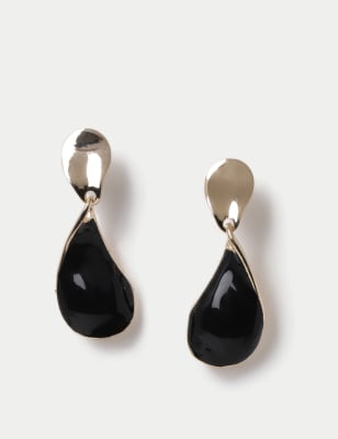 M&S Women's Gold Tone And Black Powder Coat Oversized Drop Earring, Black