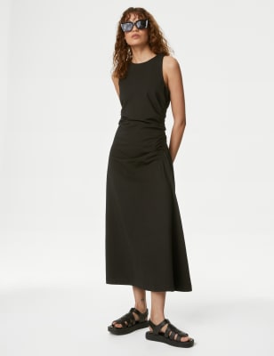 M&S Women's Jersey Round Neck Midi Tiered Tea Dress - 6REG - Black, Black