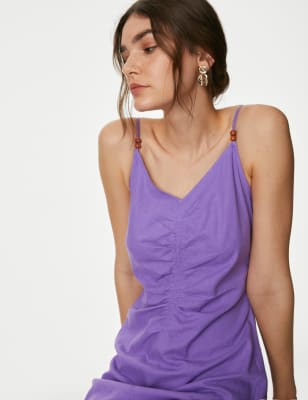 This linen-rich shift dress is a versatile addition to your warm-weather wardrobe. It's crafted in a comfy regular fit, with a versatile midaxi-length hem. A feminine v-neckline and breezy short sleeves add a flattering finish to the piece. n M&S Collection: easy-to-wear wardrobe staples that combine classic and contemporary styles.