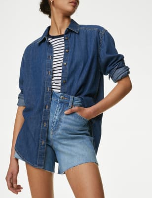 We've added our clever shaping technology to these cotton-rich knee-length shorts for a truly figure-flattering look. They're made from premium bi-stretch denim for comfort and support. A contoured waistband means they won't gape. Strategically placed darts help to lift your silhouette, while hidden front pockets create a smooth effect. Made with organic cotton. All M&S denim is made with responsibly sourced cotton and less water.n M&S Collection: easy-to-wear wardrobe staples that combine classic and contemporary styles.