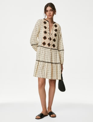 Step out in style wearing this elegant mesh skater dress. It's designed in a regular fit, with a sleeveless bodice and an easy round neckline. The fitted bodice falls into a gathered midi-length skirt that has lots of volume. A neat button fastening and keyhole opening at the back complete this pretty piece. nM&S Collection: easy-to-wear wardrobe staples that combine classic and contemporary styles.