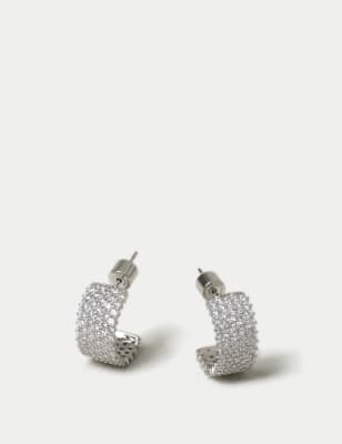 M&S Women's Platinum Plated Cubic Zirconia Hoop Earrings - Silver, Silver