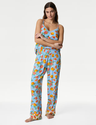 Bright blooms lend a pretty and fresh feel to this woven cami pyjama top. Classic sleeveless style, cut to a comfortable regular fit. Lace edging around the v-neck adds a feminine finish.n M&S Collection: versatile styles in modern shapes with unique and playful details.