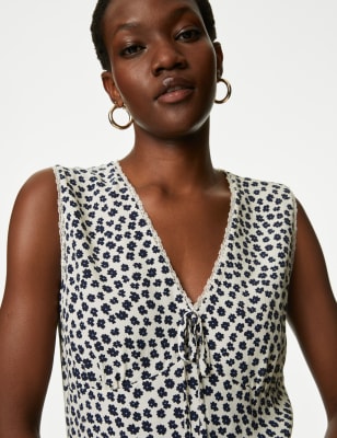 M&S Women's Pure Cotton Embroidered Frill Detail Blouse - 10REG - Ivory Mix, Ivory Mix