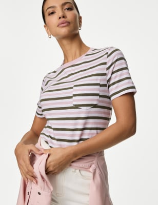 M&S Women's Pure Cotton Ombre Slub Sweatshirt - XS - Pink Mix, Pink Mix,Blue Mix,Orange Mix,Green Mix