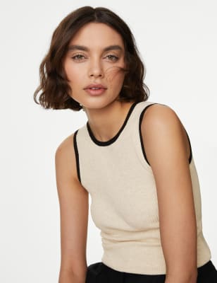 M&S Women's Pure Cotton Printed Crew Neck Tie Front Blouse - 12REG - Ecru Mix, Ecru Mix