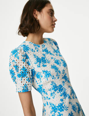 This shirt dress is crafted from pure cotton for a comfy feel. It's cut to an easy regular fit, with a self-tie belt to cinch the waist and an eye-catching all-over print. The collared neck and button-through front provide a smart look. Short sleeves and a midi-length hem complete this timeless piece.n M&S Collection: easy-to-wear wardrobe staples that combine classic and contemporary styles.