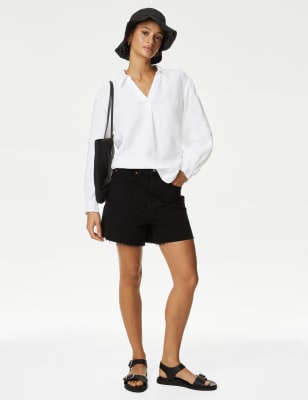 This popover-style blouse offers an effortlessly smart look. It's made from pure linen for a breathable feel in an easy regular fit. A collared neck adds a flattering touch to the piece, while the statement print offers distinctive appeal.n M&S Collection: easy-to-wear wardrobe staples that combine classic and contemporary styles.
