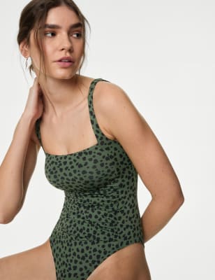 Feel your confident best by the pool or the sea in this stylish square-necked swimsuit. Comfy regular fit, with a discreet front panel made from power mesh to hold and sculpt your figure. Enhanced with ruched detailing for a flattering look. The unwired cups are padded for a smooth outline and the shoulder straps are adjustable for the perfect fit. Added stretch in the material ensures plenty of comfort.n M&S Collection: versatile styles in modern shapes with unique and playful details.