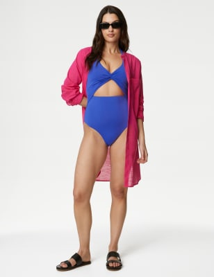 With their ruched twist front detail, these bikini bottoms are designed to flatter your figure. They're cut to a regular fit with a comfy high waist and an elegant high leg. The chlorine-resistant fabric is made with added stretch for easy movement in the water. n M&S Collection: versatile styles in modern shapes with unique and playful details.