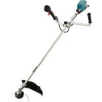 The Makita DUR369A is a cordless brushless brush cutter powered by two 18v LXT Lithium-Ion batteries in series. It has a 3 stage speed control (Hi / Med / Lo) that can be changed by simply pushing a button on the easy to use LED display. The DUR369A features a reverse switch that is ideal for tangled grass clippings which means they can be removed by slow reverse rotation of the cutting tool (automatically stops after three seconds) by pressing a button and pulling the trigger. The automatic torque drive technology means the RPM is automatically shifted according to the density of weeds. Features & Benefits • Brushless motor • Electronic current limiter for overload protection • Electric brake • Soft start feature • Constant speed control • Reverse switch for easy removal of grass clippings • Ergonomic handle bar of off-set design • Active feedback sensing technology (AFT) • Automatic torque drive technology (ATD) Specifications • Battery Type: Makita LXT Lithium-Ion • Voltage: 36v (18v x 2) • Spindle Size: M10 x 1.25l • Cutting Diameter: 430mm • Noise Sound Pressure: 80.5dB(A) • Noise Sound Power: 93.8dB(A) • Noise K Factor: 2.5dB(A) • No Load Speed (Hi): 7000rpm • No Load Speed (Med): 5500rpm • No Load Speed (Lo): 4600rpm • Vibration K Factor: 1.5m/sec² • Vibration (Nylon Cutting Head): 2.5m/sec² Contents • Makita DUR369A Twin 18v LXT Cordless Brushless Brush Cutter 430mm • 2 x 5ah Makita LXT Lithium-Ion Batteries • Twin Port Charger • Harness • Metal 2-Tooth Blade • Plastic Blade • Nylon Cutting Head • Blade Guard • Box Wrench • Hex Wrench • Accessory Bag