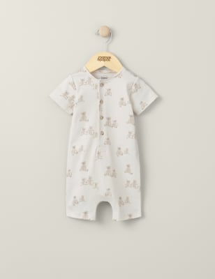 Mamas & Papas Embroidered Teddy Bear Romper (6½lbs-12 Mths) - NB - Cream, Cream
